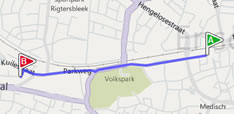 Neem op de A35 de afslag Enschede-West richting Westerval. Bij de stoplichten gaat u driemaal achter elkaar direct de eerste links. Het gebouw in de bocht is ons kantoor.